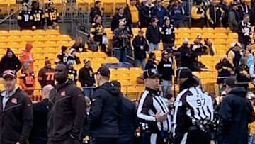Refs Acting as a Human Divider Between Browns and Steelers During Warmups