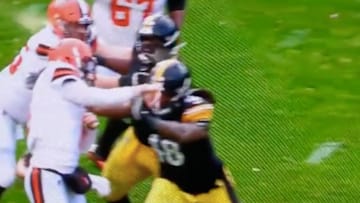 VIDEO: Baker Mayfield Exits Game Against Steelers After Smashing Hand on Defender's Helmet