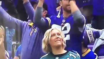 VIDEO: Eagles Fan Gets Caught Doing Vikings 'Skol' Chant on TV and Has Some Explaining to Do